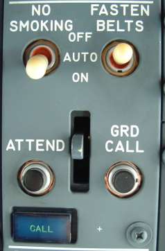 ![]() The blue CALL light on the overhead panel illuminates and a single-tone chime sounds when either the cabin crew (service interphone) or ground crew (flight or service interphone) are calling the flight deck. |