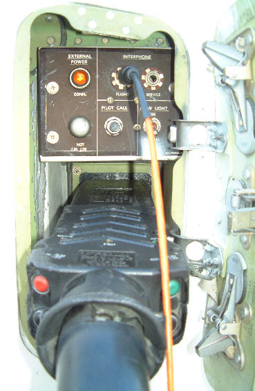 ![]() The service interphone is used by engineers to communicate with the service interphone stations inside the aircraft. Note that the Service Interphone switch on the aft overhead panel must be switched ON for this use. There is also a pilot call button and a nose-wheelwell light switch to assist the groundcrew to insert the steering bypass pin. |