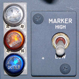 ![]() Marker BeaconsThe markers are pre-tuned to their 75MHz frequency and illuminate when overflown. The marker tone can also be heard if selected on the ACP. |